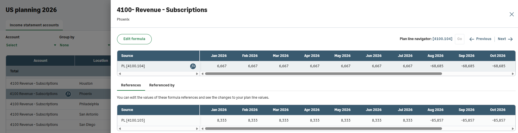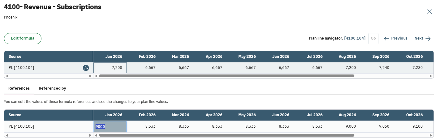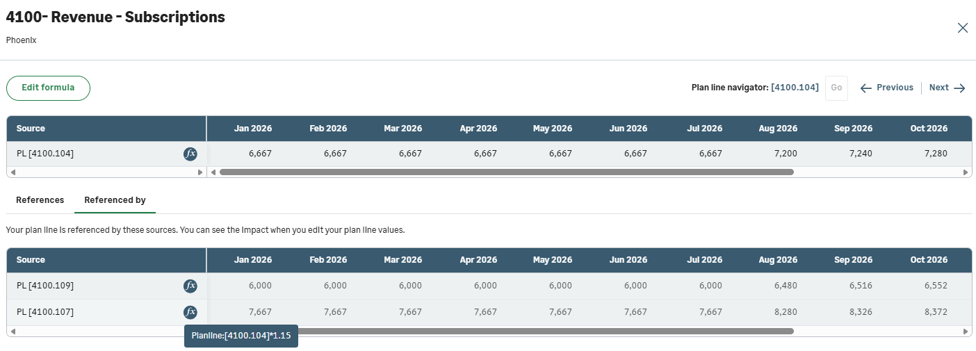 If your plan line formula references other plan lines, these plan lines appear in the References tab. You can modify these plan lines and see how the changes impact your current plan line.