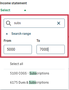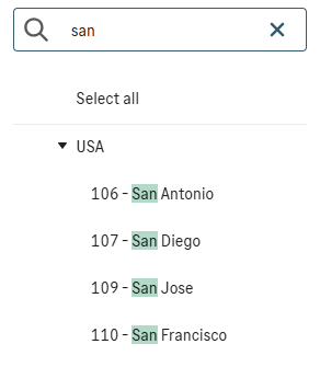 If you select a parent value, a checkmark also appears next to all its child values in the search results.